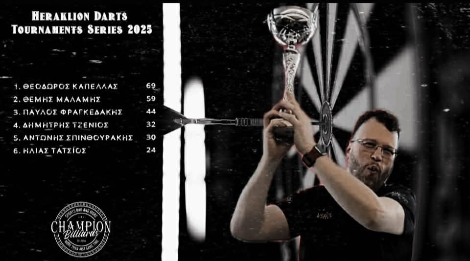 Το Heraklion Darts Series 2025 έφτασε στο κομβικό του σημείο και η είδηση είναι μία, καθαρή και αδιαμφισβήτητη: Ο Θεόδωρος Καπέλλας είναι ο μεγάλος πρωταγωνιστής και ΠΡΩΤΑΘΛΗΤΗΣ της σειράς μέχρι